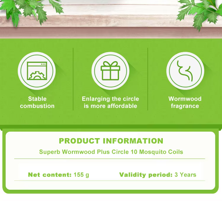1.高效灭蚊配方、优质碳粉、2.使用方便、燃烧稳定、可拆卸、结构坚固、3.艾草香、氯氟醚菊酯含量0.04%~0.07%、灰分≤15mg/g、药液中艾草提取物的提取