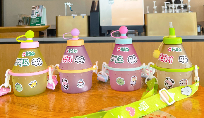 杯身PC+ABS/食品级硅胶密封圈/盖子PP+硅胶 /吸管PP/涤纶背带/尺寸约11.4*15.4cm
