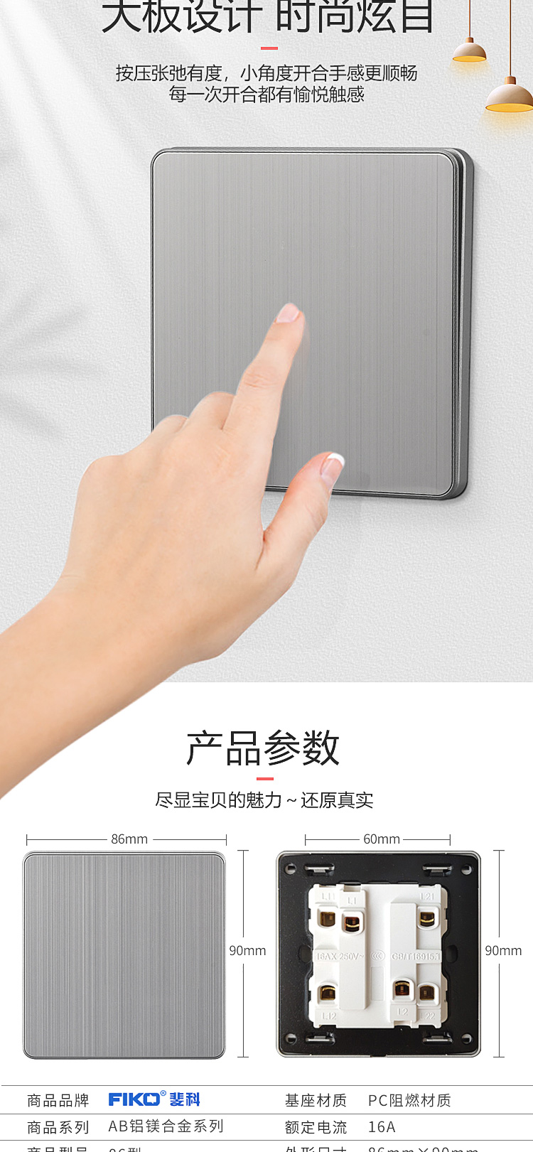 AB-L不锈钢灰色一位开关