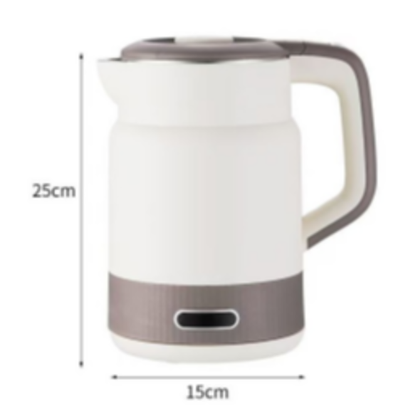 一个货柜能容纳8100个该电热水壶,产品的各项参数信息如下:▲220V,50Hz,1500W▲2.5L容量▲201SS+PP plastic▲电工头,铜包铝电源线75CM长,赛瑞克斯单金温控▲带内钢盖、带银圈、玫瑰金圈+0.5