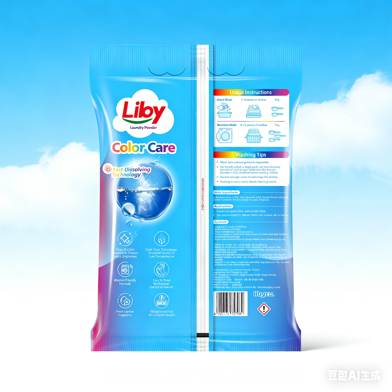 无磷环保型花香洗衣剂 手洗机洗两用 零售包装:双向拉伸聚丙烯/双向拉伸尼龙+线性低密度聚乙烯、1. 活性物质:≥15.5%、2. 色彩增亮因子、3. 不伤衣